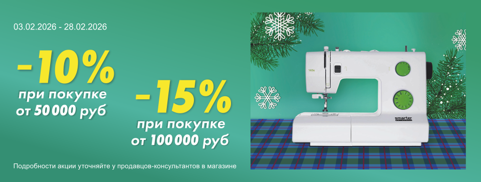 При покупке швейной машинки или оверлока в Уфе действуют существенные скидки на аксессуары и товары для рукоделия. Всегда в продаже сотни товаров со специальной скидкой, которая действует при покупке на сайте.