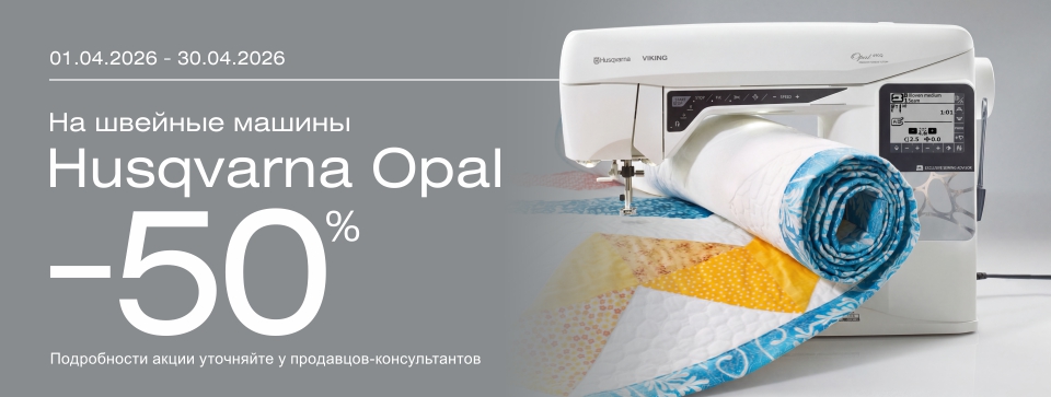С 1 по 30 апреля во всех магазинах «Швейный мир» — легендарные швейные машины Husqvarna Viking Opal доступны за полцены.